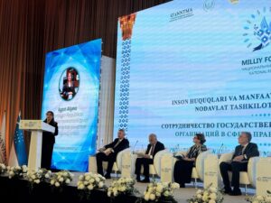 2025-ci il dekabrın 3-də Daşkənddə “İnsan hüquqları və maraqlar sahəsində dövlət və QHT əməkdaşlığı” mövzusunda Milli Forum keçirilib.