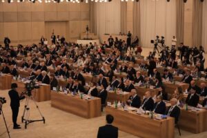 Prezident Administrasiyasının Siyasi partiyalar və qanunvericilik hakimiyyəti ilə əlaqələr şöbəsinin müdiri Ədalət Vəliyev Prezident İlham Əliyevin konfrans iştirakçılarına müraciətini oxuyub.