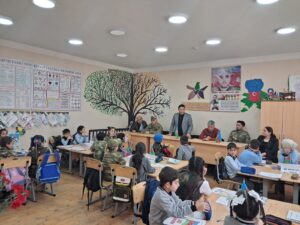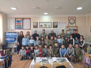 Ehtiyatda olan baş leytenant Qasımov Qasım isə döyüş meydanında yaşadığı təcrübələri şagirdlərlə bölüşərək, xalqımızın birlik və əzmi sayəsində hər zaman güclü və yenilməz olduğunu vurğulayıb.